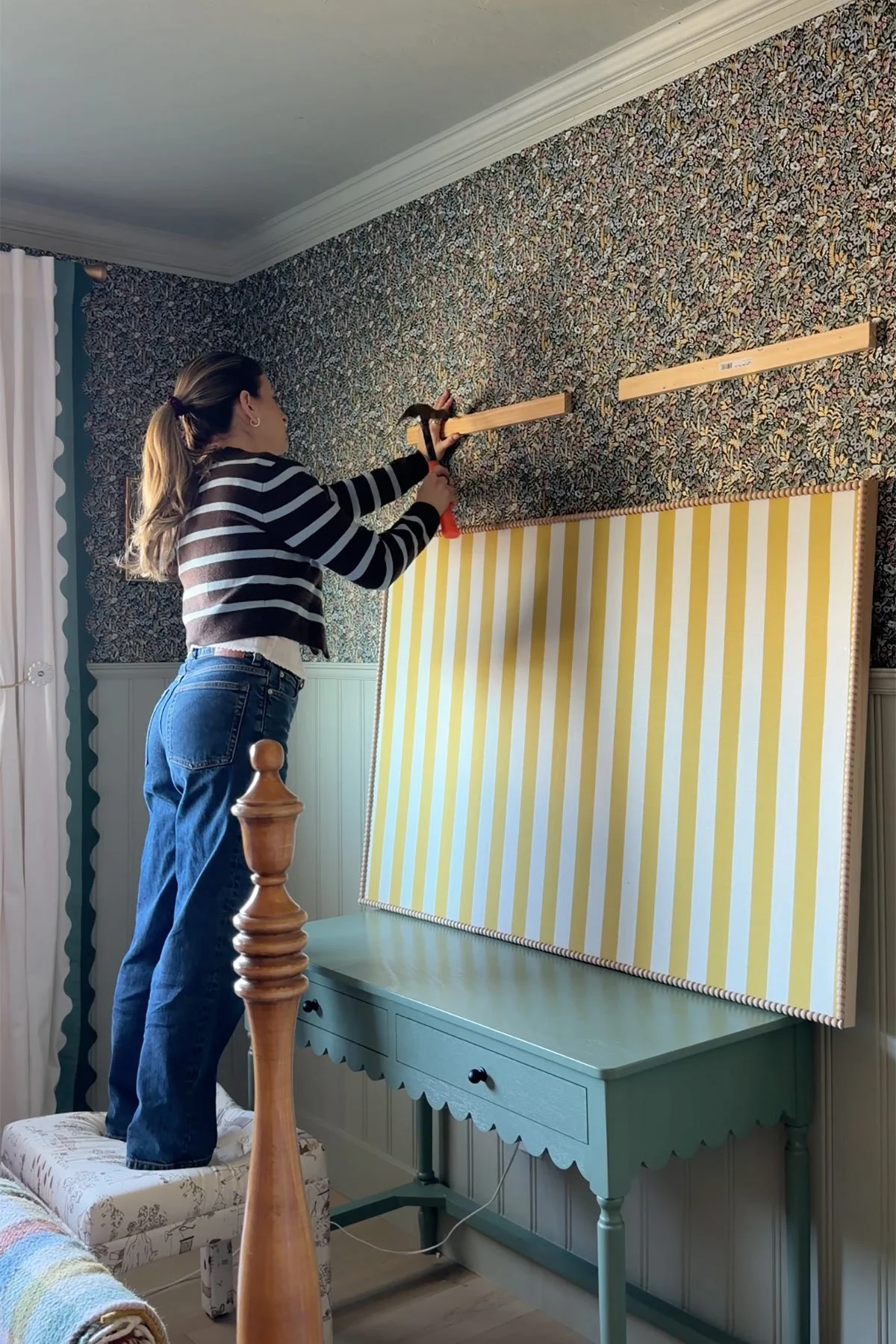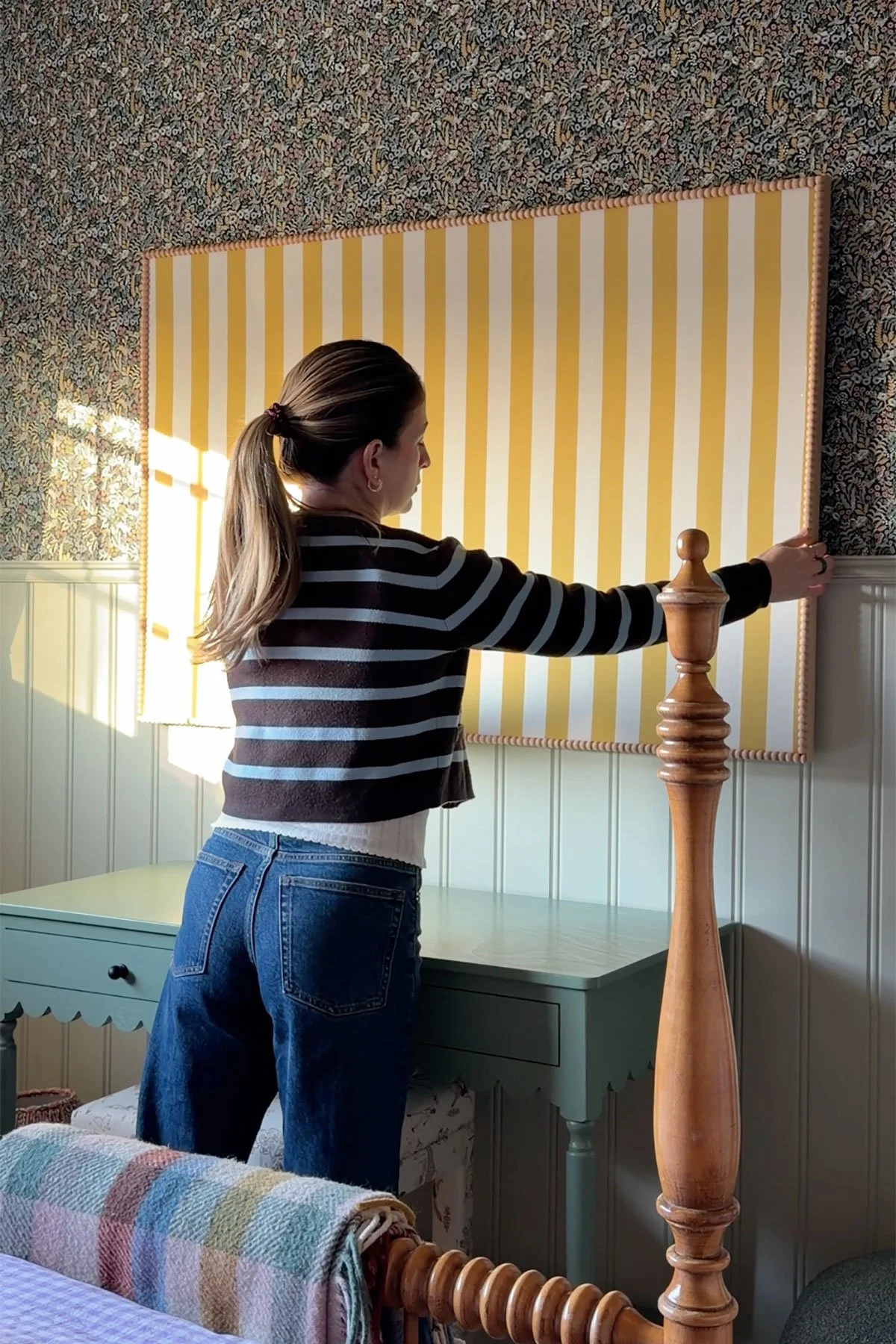 I originally planned to paint the trim but ended up loving the natural wood tone against the fabric. If you decide to paint yours, I recommend painting before installation.