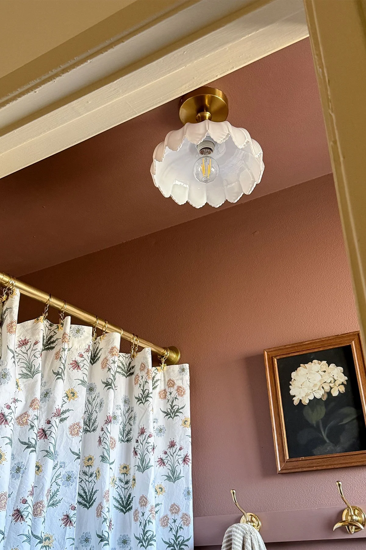 One of the most impactful updates in this space was swapping out the old light fixture. The previous one felt generic and flat, and replacing it with something more intentional instantly elevated the room. Lighting isn’t just functional, it sets the mood and adds character, especially in a small space.