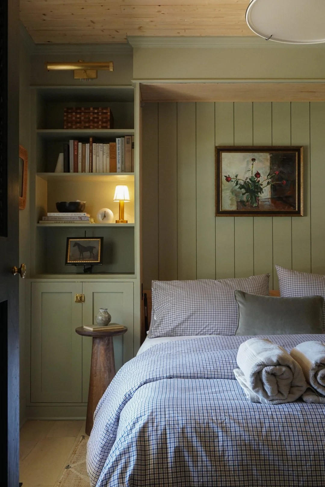 Next, it was time to make the bed’s flat panel blend seamlessly with the rest of the built-ins. To do this, we added wood boards to the back of the bed to give it the appearance of cabinet doors. It was a simple process, but it made a big difference in the overall design.