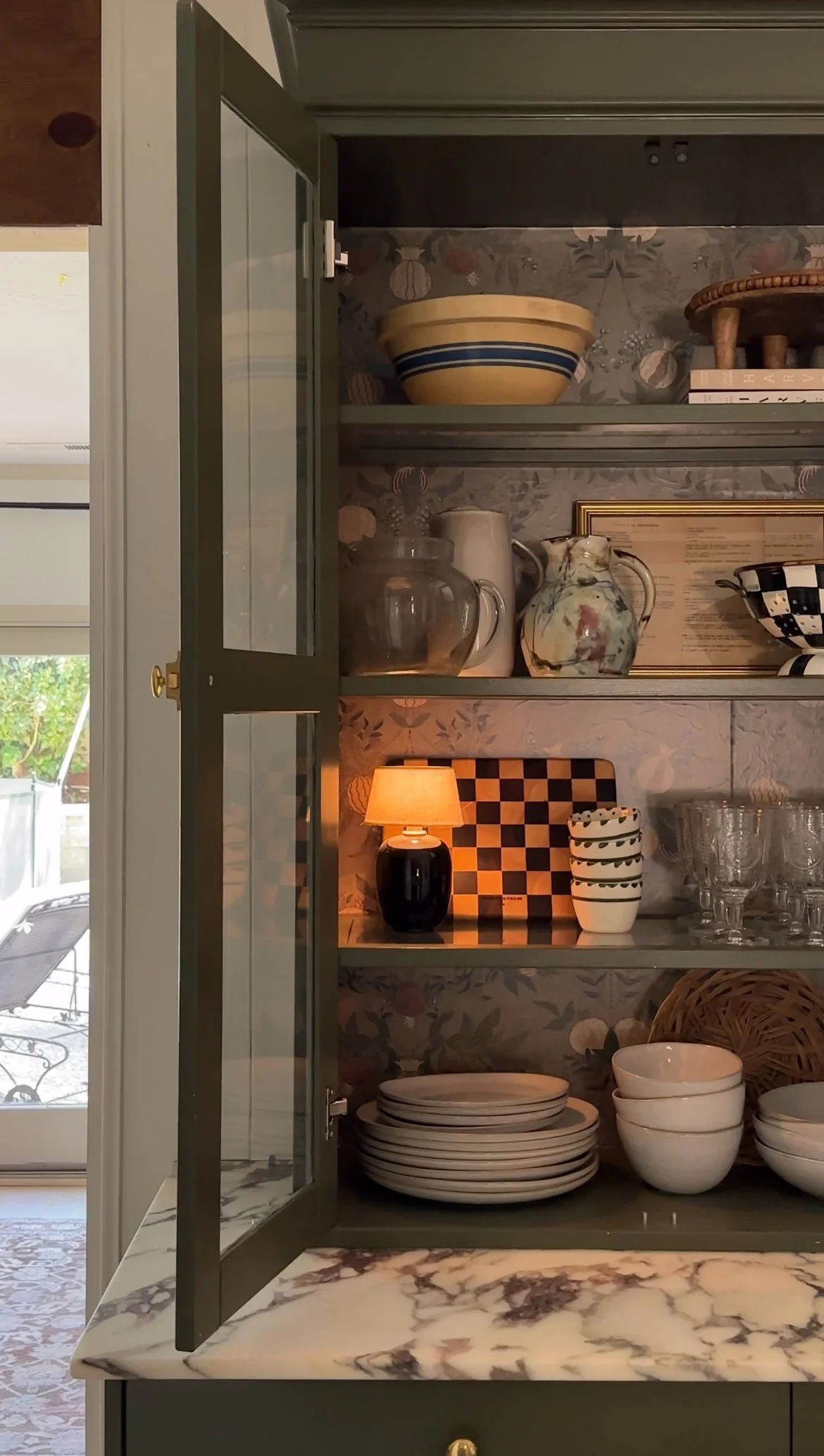To finish it off, I added a beautiful wallpaper to the back panel and installed my go-to hardware from Rejuvenation. I love how it all came together!