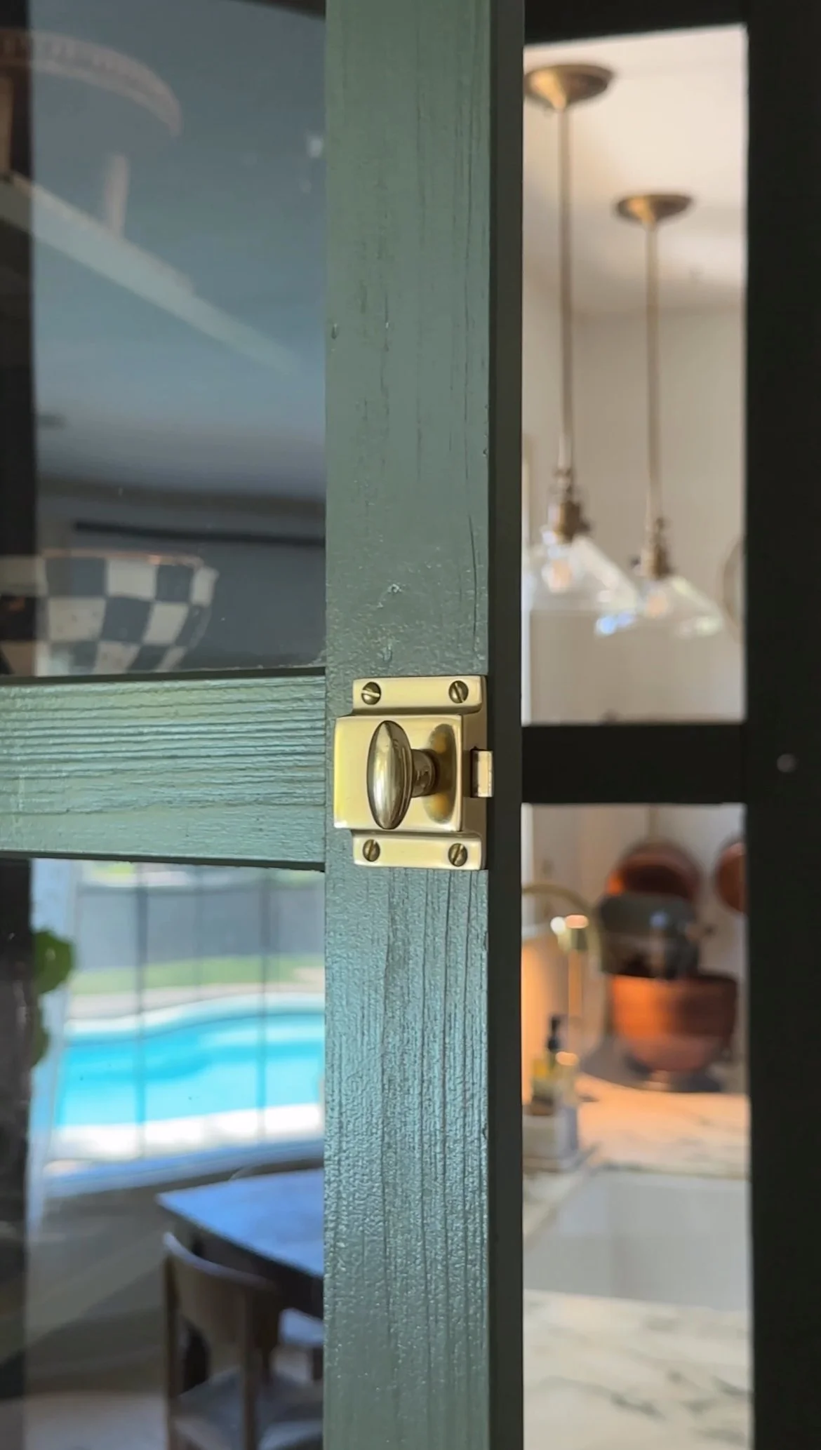 The texture, color, and subtle contrast added just the right amount of charm. It doesn’t feel overwhelming, just really balanced in our home. My favorite detail? Seeing that soft blue peek through the glass doors.